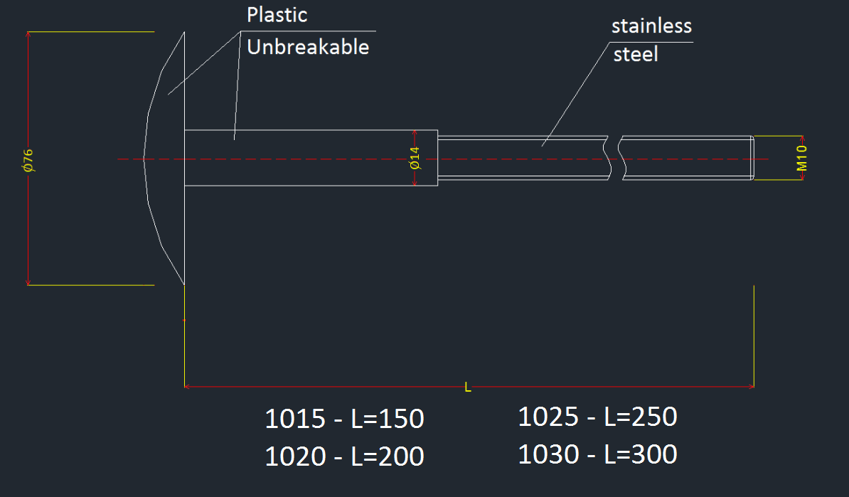 Dimension: head mushroom D80 (mm) x Length L (mm) that can be changed